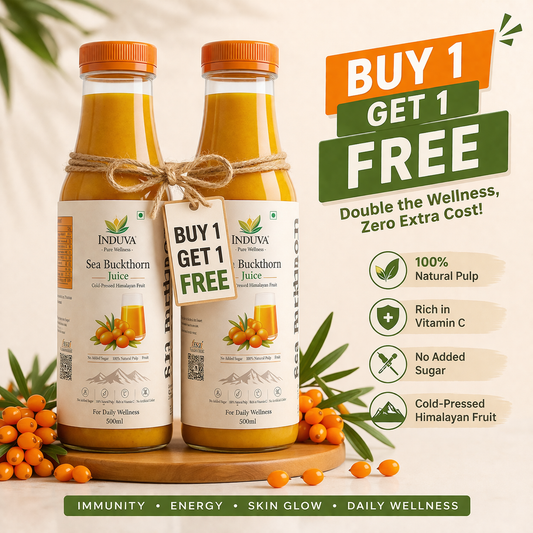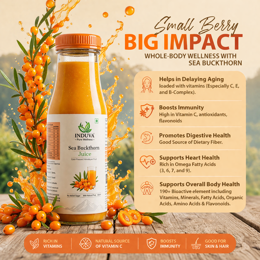 INDUVA™ Pure Himalayan Sea Buckthorn Juice | Cold-Pressed Superfruit (Rich in Omega 3, 6, 7, 9 & Vitamin C)